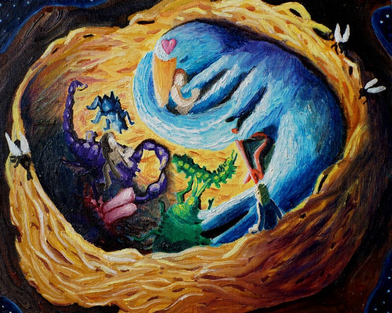 Le Chaos jouant avec les humain.e.s grâce aux ressources de l'Amour , 2023 , huile sur toile